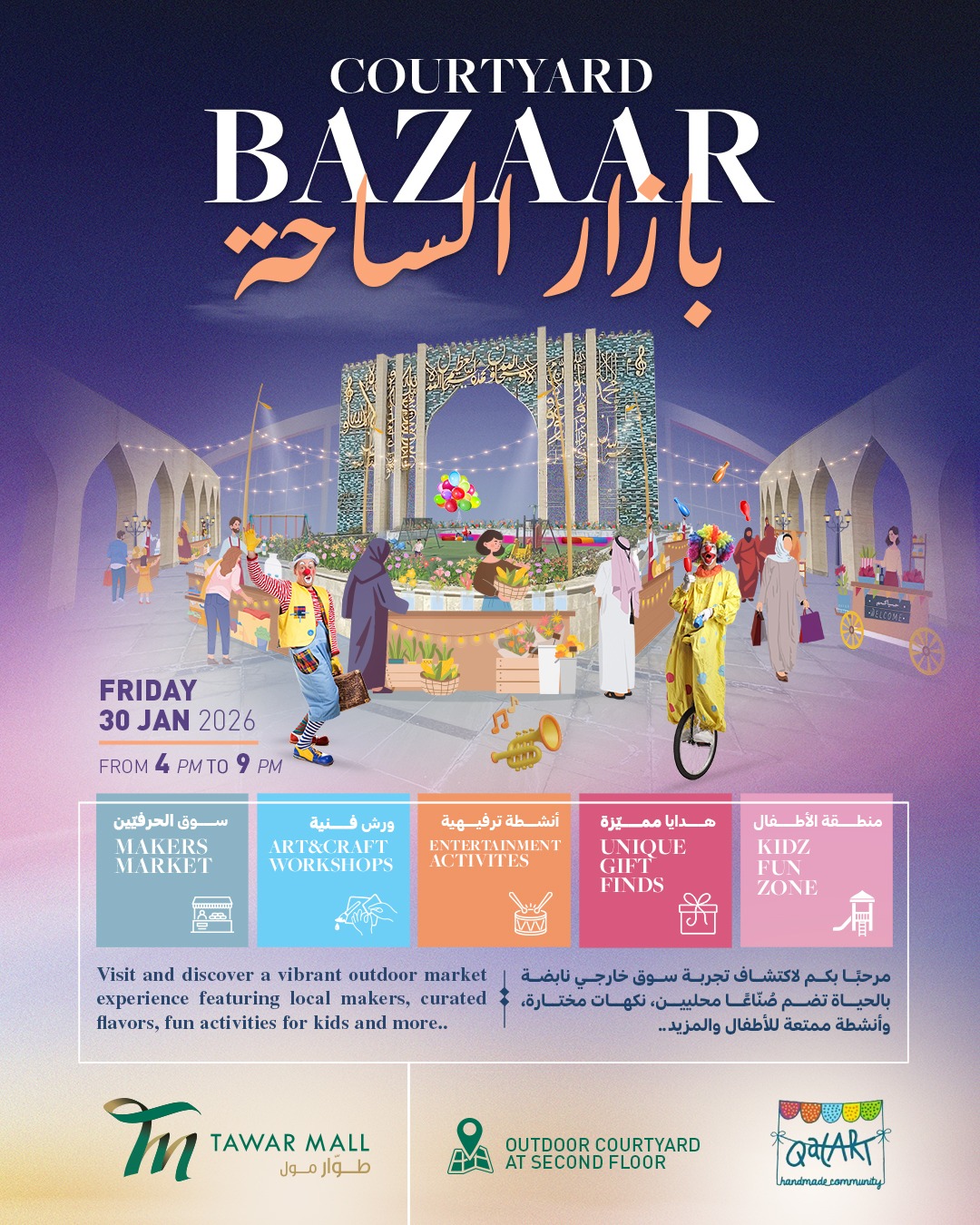 Join us to visit and discover a vibrant outdoor market experience featuring local makers, curated flavors, fun activities for kids and more.. 📍 Tawar Mall...