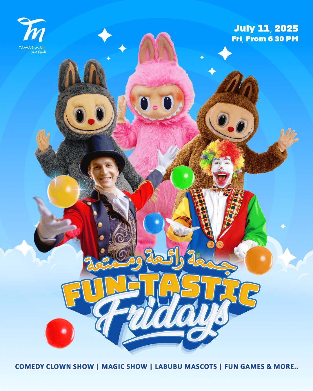 Exciting Friday Ahead! Join us for a day of magic, laughter, games & mascots. don’t miss the fun! 🎪🎉 انضم إلينا للاستمتاع بأمسية مليئة بالمرح...